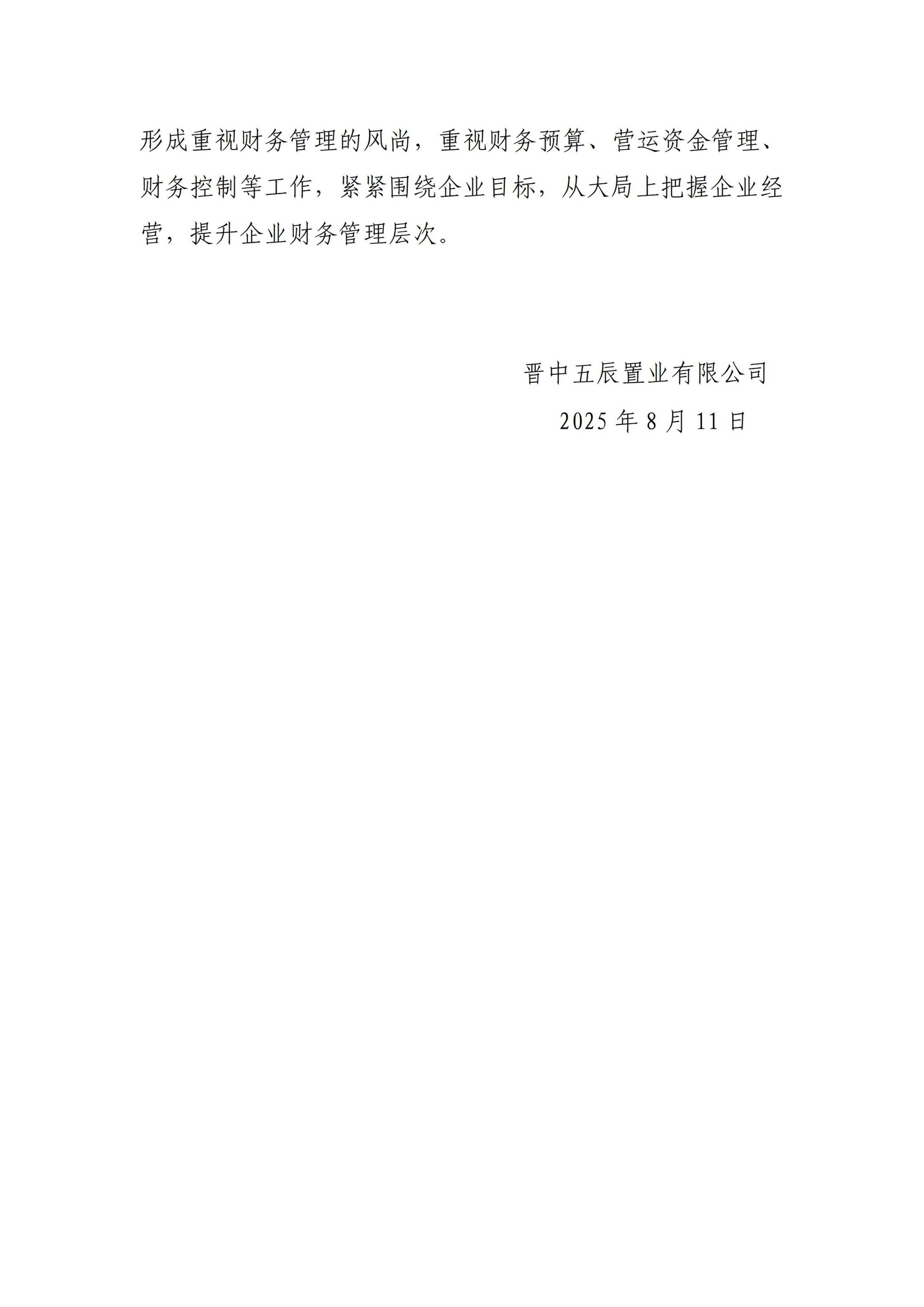 晋中五辰置业有限公司2025年二季度企业重大信息果真