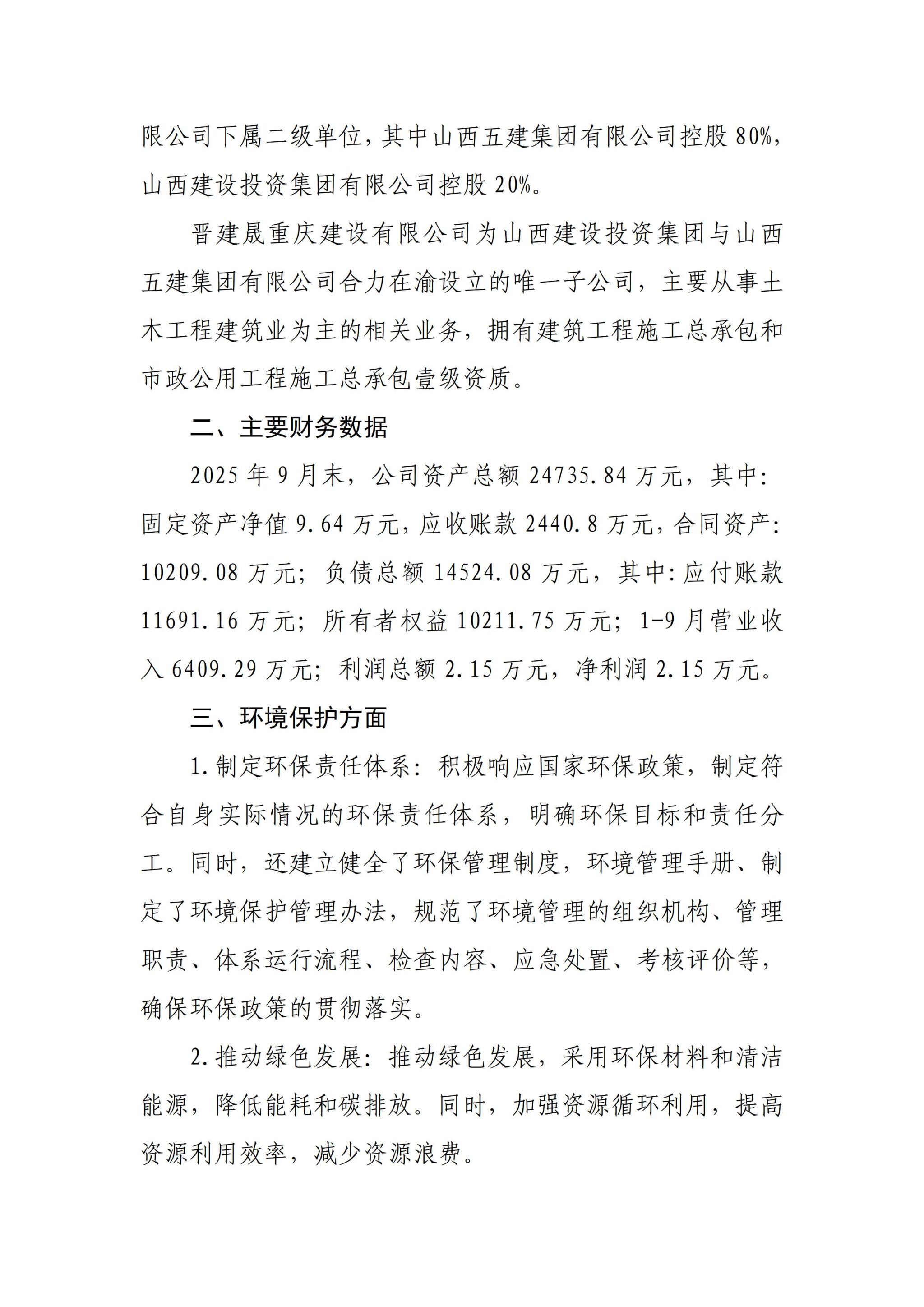 晋建晟重庆建设有限公司2025年三季度企业重大信息果真