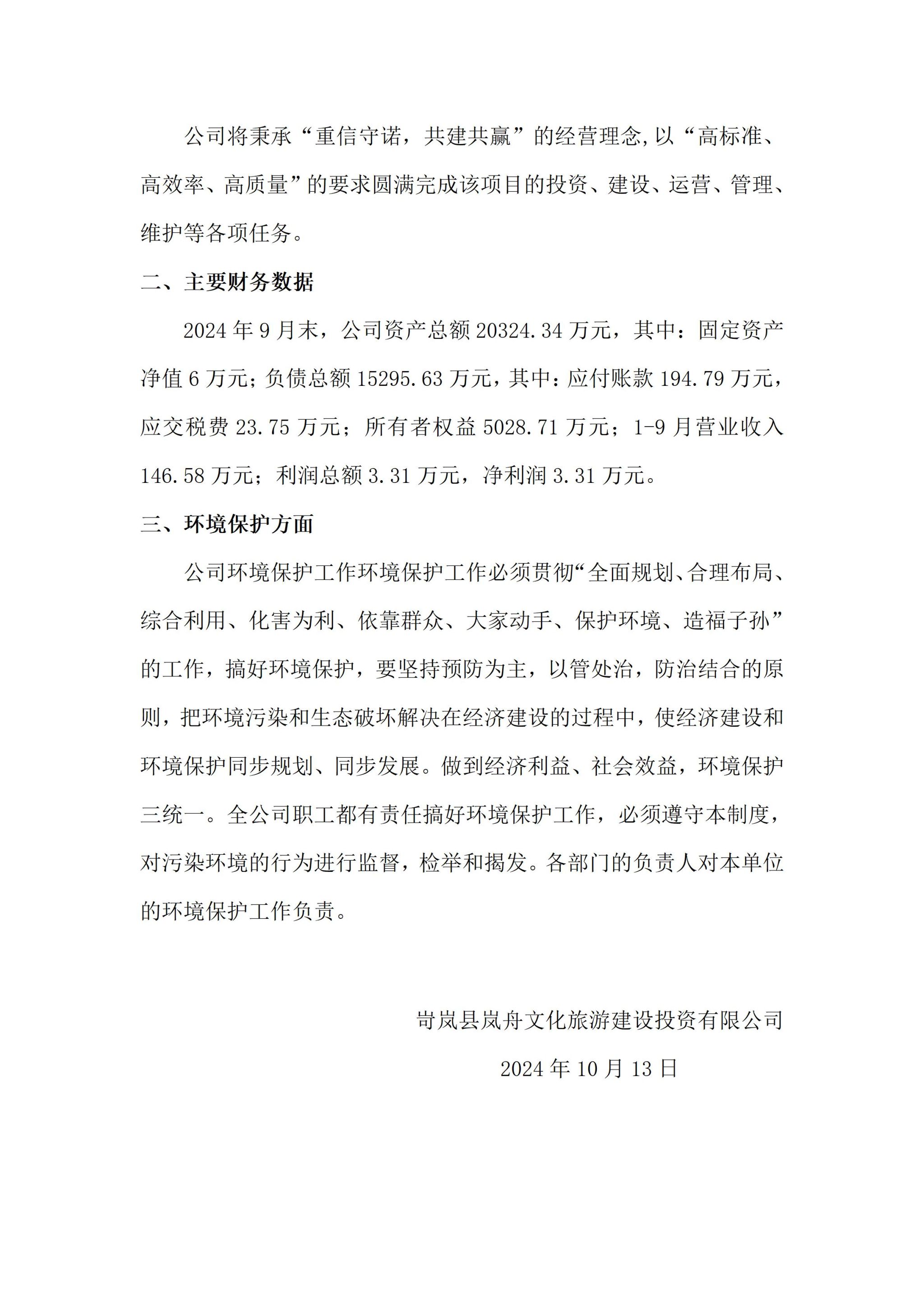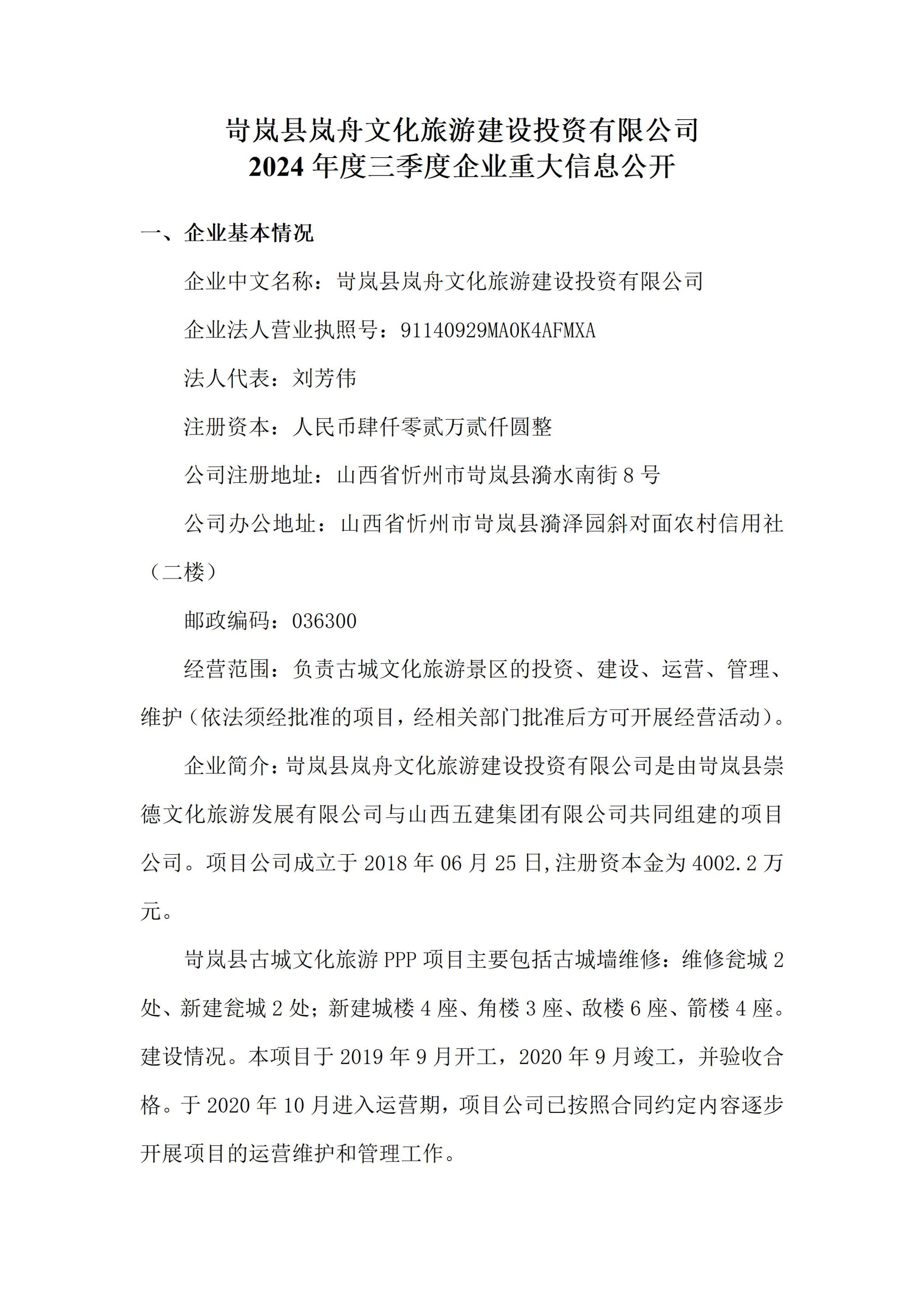 岢岚县岚舟文化旅游建设投资有限公司2024年第三季度企业重大信息果真