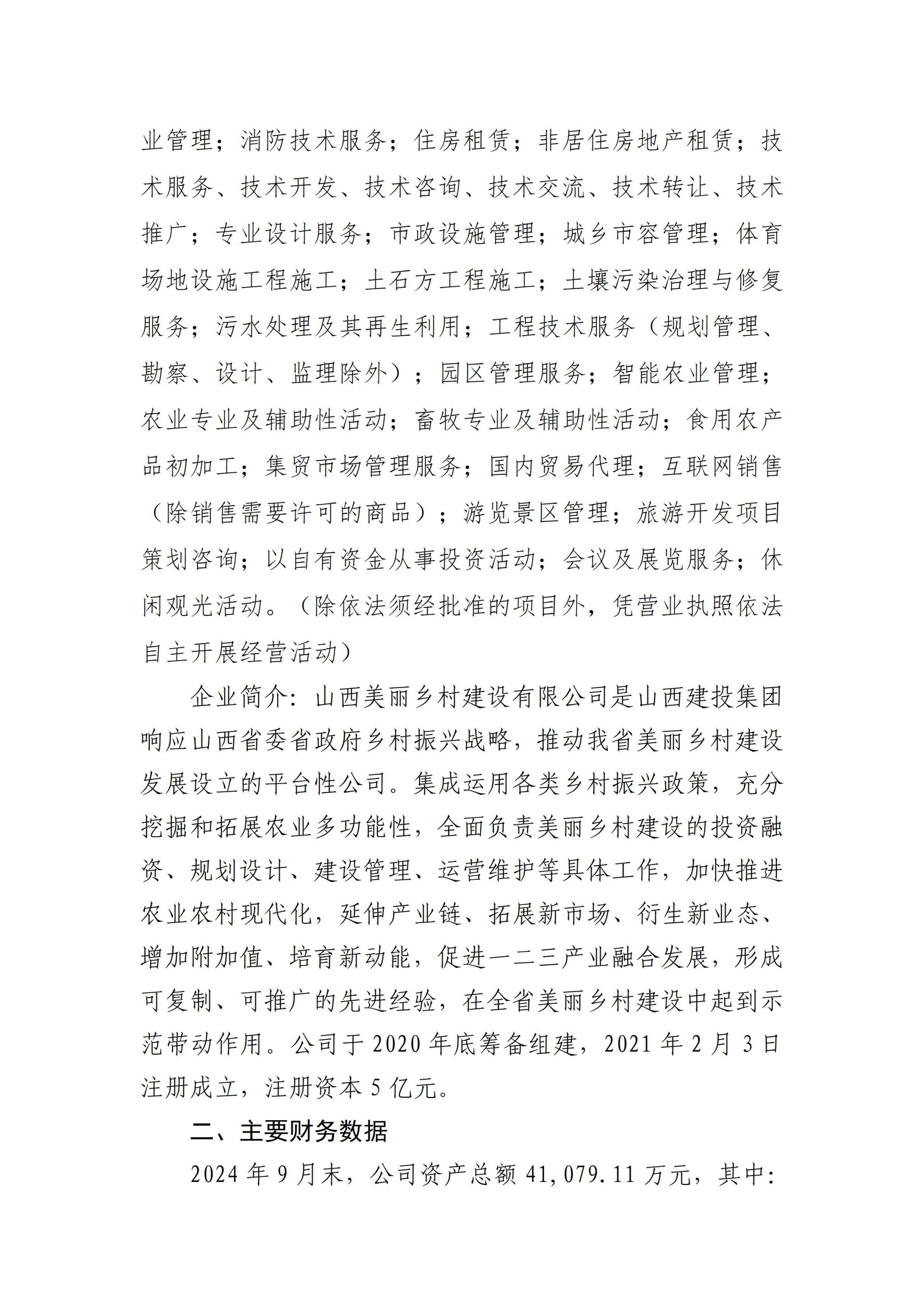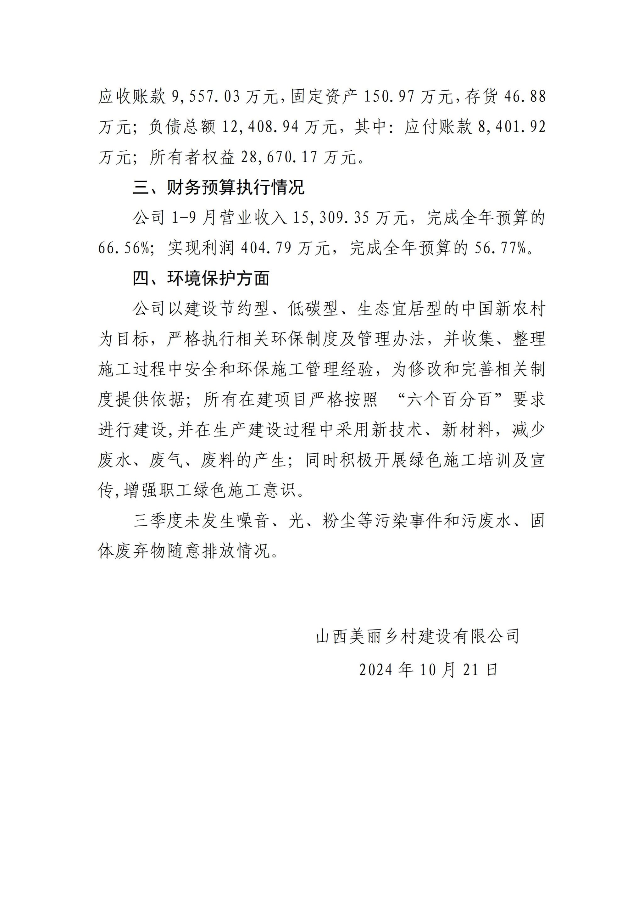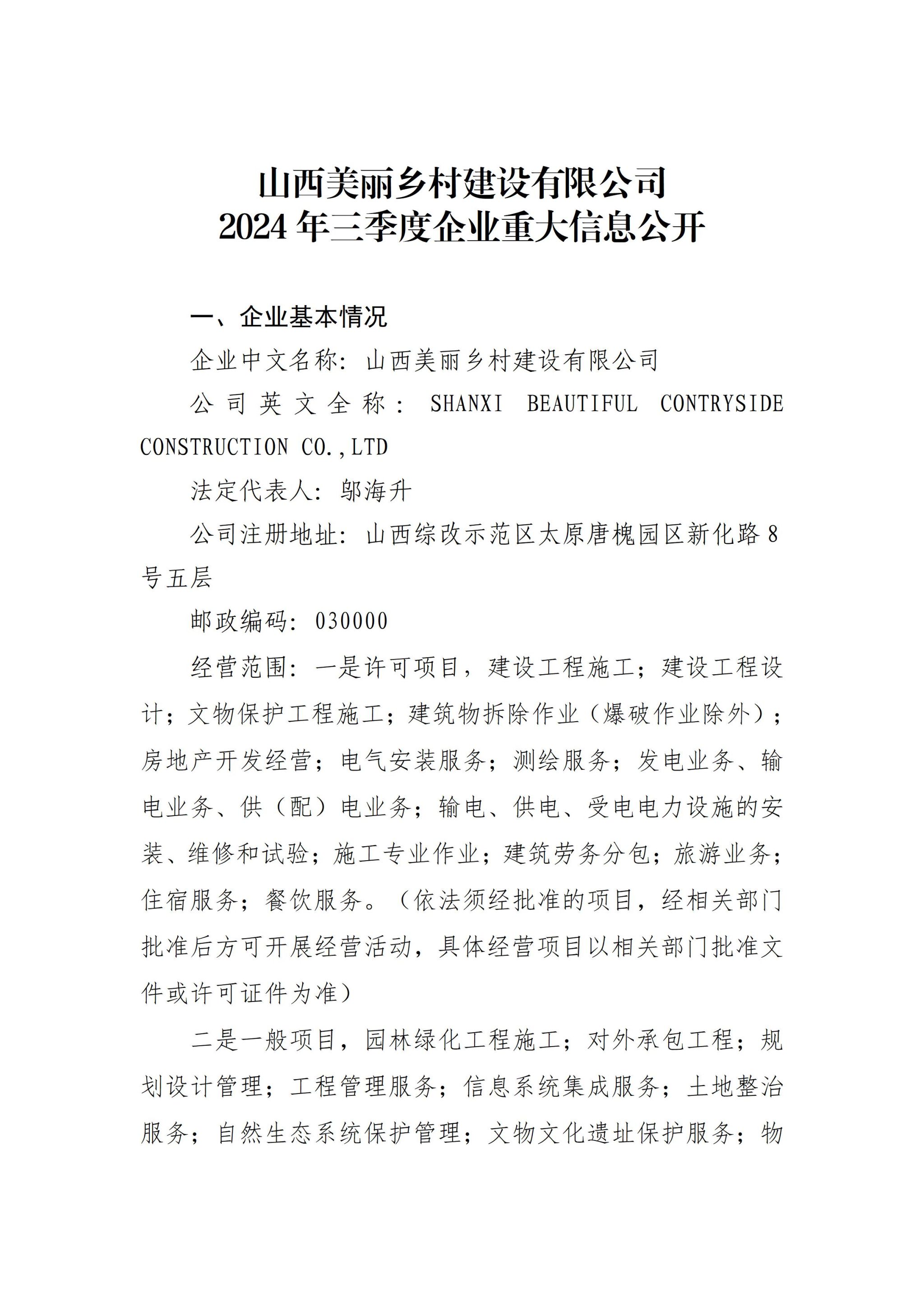 山西漂亮墟落建设有限公司2024年三季度企业重大信息果真